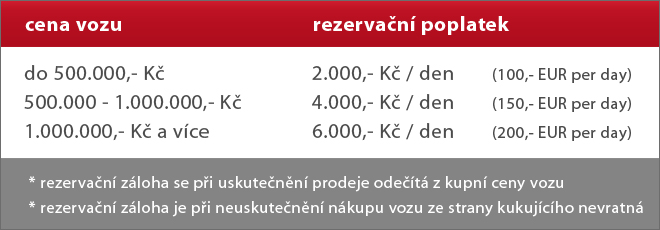 Přehled rezervačních poplatků při rezervaci vozu: (maximální doba rezervace vozu je 35 dní)